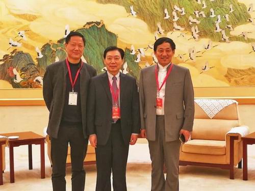 (原总后卫生部部长,中国健康促进基金会终身名誉理事长白书忠、金天国际董事局主席祖明军、金天御源健康发展有限公司副总经理马建钢 合影)