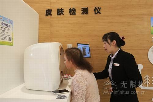 或者让皮肤检测仪扫上“三眼”,了解肌肤年龄,还有毛孔、皱纹、粗糙度、色斑等数据。