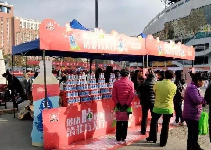 参与活动的市民免费领取连花清菲植物饮料