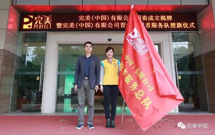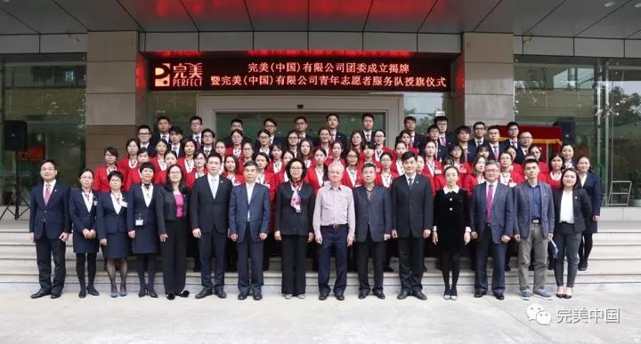 11月30日,中国共青团完美(中国)有限公司委员会(以下简称完美团委)成立揭牌暨青年志愿者服务总队授旗仪式在完美公司举行,2017年中山市两新组织团建工作推进会也同时在完美公司举办。