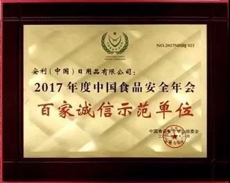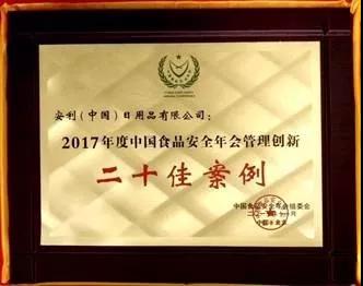 在本次年会上,安利(中国)日用品有限公司以卓越的产品品质,全方位的质量管控体系,荣获了“2017年度中国食品安全年会百家诚信示范单位”和“2017年度中国食品安全年会管理创新二十佳案例”。这是安利公司连续十一年获得这一殊荣,是对安利公司完善的食品安全体系和卓越品质的肯定。