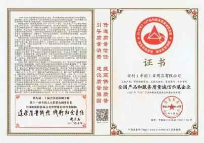 在2017年“3·15”国际消费者权益日“产品和服务质量诚信承诺”主题活动中,安利公司第六次荣获中国质量检验协会颁发的“全国产品和服务质量诚信示范企业”的称号。