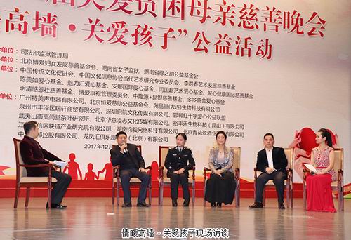 善行天下,爱心绽放。2017年12月3日晚,由司法部监狱管理局指导,北京博爱妇女发展慈善基金会、湖南省女子监狱、湖南省绿之韵公益基金会、中国传统文化促进会等单位共同举办的“2017第二届关爱贫困母亲慈善晚会暨情暖高墙·关爱孩子”公益活动在全国政协礼堂成功举行。