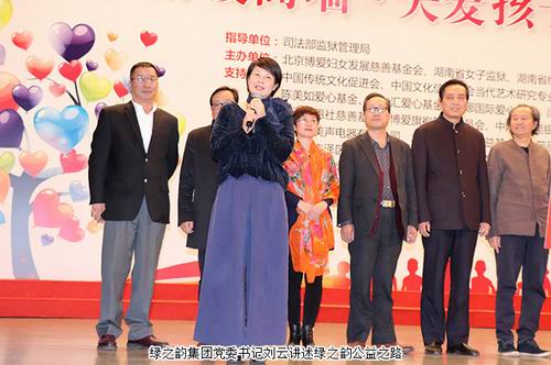 慈善晚会还举行了捐赠仪式,爱心企业及爱心人士现场踊跃奉献爱心,共筹集慈善款物价值560万元。绿之韵集团党委书记刘云表示:母亲是一个家庭的重要支柱,服刑的贫困母亲背后的家庭也承受更大的生活困苦。作为一个特殊的社会群体,他们默默承受着生活的磨难与压力,孩童们在求学之路上承受比常人更多的艰难,付出比常人更多的代价。绿之韵集团将一如既往的专门针对贫困、患疾病、失业、服刑的贫困母亲们开展帮扶活动,使救助妇女空间更大、救助项目更集中、扶贫地区更广泛,继续为爱行动,影响和带动更多的热心人士和爱心企业参与到关爱贫困母亲的公益事业中来。