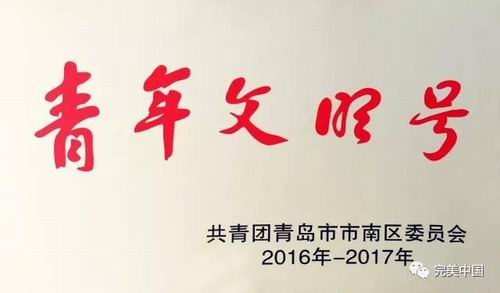 为树立典型,表彰优秀青年集体,激励更多青年积极投身青年文明号创建工作,共青团青岛市市南区委员会于2017年开展“青年文明号”评选活动。11月,历时半年的评选结果揭晓,完美青岛分公司被评为2016-2017年度青岛市市南区“青年文明号”称号。