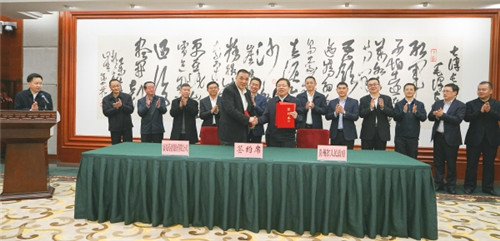 图为贵州省委常委、常务副省长秦如培和康美药业董事长、总裁马兴田,分别代表贵州省和康美药业签署战略合作协议。
