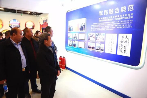 在卫康文化馆,考察团一行了解了卫康与中国航天第十二研究院的合作项目,对军民融合典范项目——航天康养在慢病防治及改善亚健康人群的贡献表示赞扬,认为卫康率先在全市开展军民融合领域的积极探索,对于卫生健康企事业有很大的带动与示范作用。