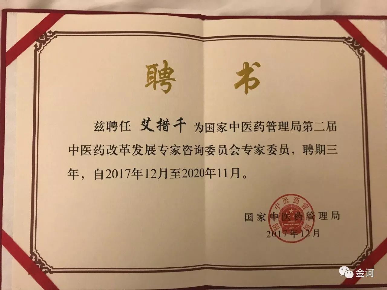 艾措千董事长再次荣任中医药改革发展专家咨询委员会专家委员