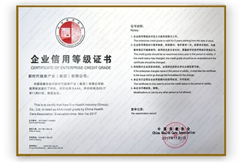 新时代荣获中国保健行业企业信用等级AAA级殊荣