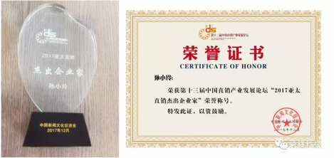 ▲孙总荣膺“2017亚太直销杰出企业家”奖。