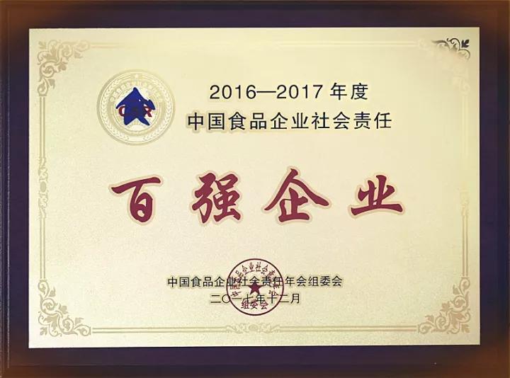 海之圣荣膺“2016—2017年度中国食品企业社会责任百强企业”