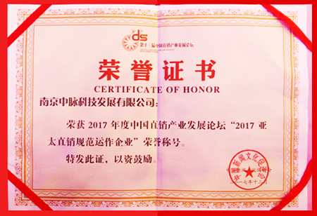 近日,第十三届中国直销产业发展论坛在北京隆重举行,中脉在本届论坛上荣膺“2017亚太直销规范运作企业”大奖。