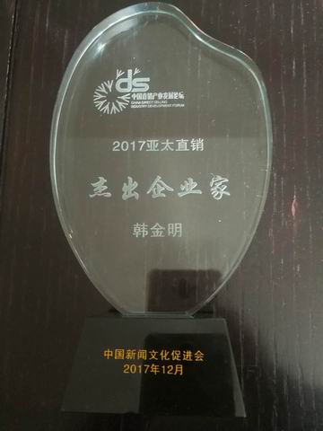 董事长韩金明先生荣获2017亚太地区直销行业杰出企业家荣誉称号
