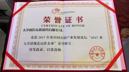 天津和治友德制药有限公司荣获2017亚太地区直销行业规范运作企业荣誉称号