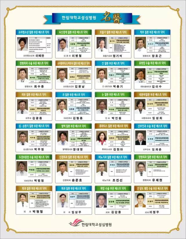 据悉,翰林大学医疗院是由翰林大学圣心医院、江南圣心医院、汉江圣心医院、春川圣心医院、东滩圣心医院等5个医疗机构,8家科研研究所组成,为韩国最大规模的医疗机构。医疗院属下的各医院有机地连系在一起,通过专业化战略,形成具有领先优势的专业中心,如汉江圣心医院的烧伤及整形手术中心、江南圣心医院的机器人手术中心、高危险孕妇的早产中心、高端体检中心,江东圣心医院的头颈部癌中心,翰林大学圣心医院的脑神经中心,春川圣心医院的肝细胞抗衰老中心和脊椎与人工关节中心等已达到世界最高水平。