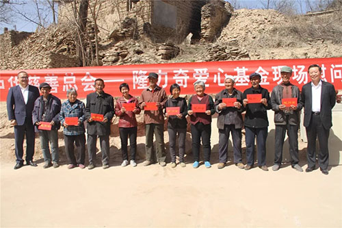 2017年4月13日-14日,中华慈善总会副会长徐镱轩、隆力奇董事长徐之伟等一行,跋山涉水,风尘仆仆赶往陕西省延川县赵家河村,实地考察隆力奇扶贫基金在当地的核桃、钟槐栽植、爱心水电站等“精准扶贫”项目落实情况,并向92户贫困户送去了慰问金。考察期间还组织召开了赵家河村特色农产品销售推广现场会,针对性的制定措施和方案。