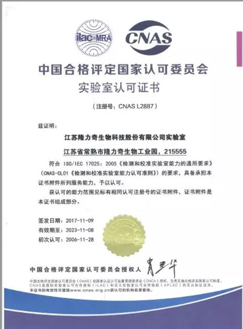 近日,隆力奇实验室通过了CNAS国家实验室认证,标志着隆力奇实验室具备了检测或校淮的技术能力,获得鉴定互认协议的40多个国家与地区实验室认可机构的承认,成为第三方权威检测机构。CNAS认证是由国家认证认可监督管理委员会批准设立并授权的国家认可机构,统一负责对认证机构、实验室和检查机构等相关机构的认可工作。此认证表明表明隆力奇具备了按相应认可准则开展检测和校准服务的技术能力,可以让检测规范化,系统化,出具的试验数据具有权威性和公信力,得到国际的认可。
