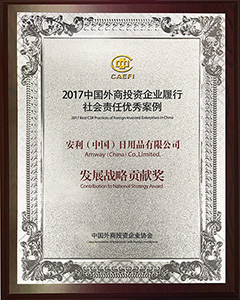 12月22日,由中国外商投资企业协会主办、《WTO经济导刊》承办的“2017中国外商投资企业履行社会责任优秀案例”发布会在北京举行。安利(中国)日用品有限公司的《“为5加油”,以“营养扶贫”助力国家精准扶贫》凭借项目的精准实施以及开展一年取得卓有成效的进展,入选《中国外商投资企业履行社会责任案例2017》,并荣获发展战略贡献奖。