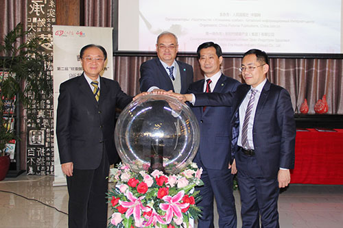 与会嘉宾共同启动“国珍杯”欧亚国家书法大赛