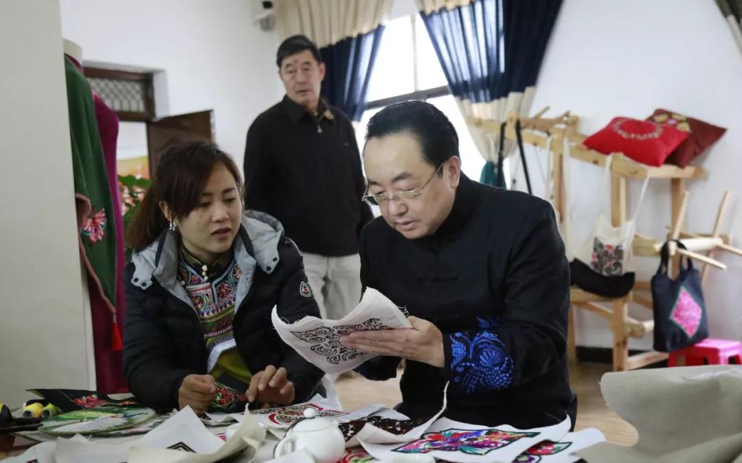 1月9日,调研组对新街镇水卜龙茶厂进行实地查看,详细的了解茶园种植、生产工艺及产品相关情况。其后,前往攀枝花乡民族刺绣产业基地进行考察,聆听传统刺绣工艺介绍,观赏民族刺绣产品。焦家良委员对传统刺绣工艺深感兴趣,现场亲自体验勐弄村刺绣工艺手法。
