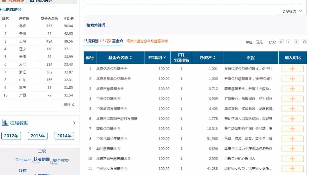 北京市777家基金会排名并列第一