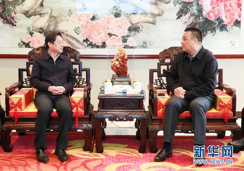 张家界市委书记、市人大常委会主任虢正贵与康美药业董事长、总裁马兴田进行交流。