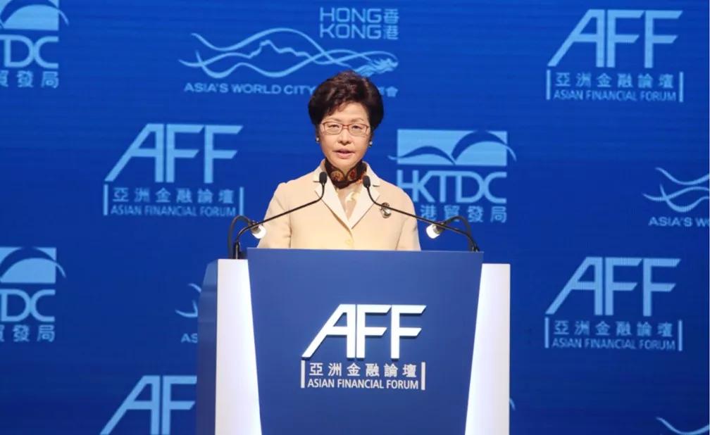 开幕式上,中华人民共和国香港特别行政区行政长官林郑月娥为大会致开幕辞。她在讲话中说道,作为世界上最大的离岸人民币市场,有70%以上人民币结算和交易的活动都发生在香港。在过去十年中,港交所融资量和IPO交易量翻番,受到许多内地公司青睐。她强调了中国内地经济快速发展在全球体系中的重要性,香港一直以来也获益于内地经济的高速增长。风险和机遇同在,香港不能固步自封,一定要把眼光放得更为长远,并且采取一致协调的政策,更好的发挥自身的长处和强项,探索新的发展机遇。当前,尤其在“一国两制”政策指导下,内地和香港之间的联系将比以往任何时候都更为紧密。她呼吁香港应团结各方力量,更好的促进亚洲金融发展。目前香港已经设立2亿港币的基金,来投资新兴科技企业。未来,到2020年之前,香港预计培育150家金融创新或金融技术的机构。