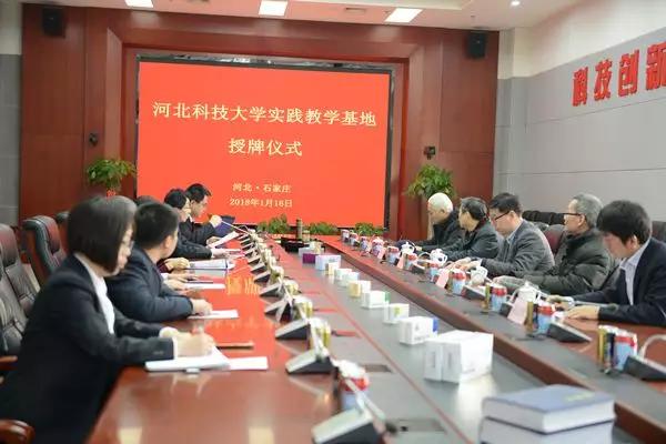 2018年1月16日,“河北科技大学实践教育基地”授牌仪式在石家庄以岭药业院士工作站一层会议室举行,以岭药业与河北科技大学校企合作成立实践教育基地。