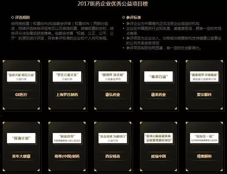 在此次发布的优秀公益项目榜单中,康美药业“青禾行动”与GE医疗“金质关爱 粉红行动”、上海罗氏制药“罗氏儿童义走”、西安杨森“抗击结合 为爱同行”、辉瑞中国“县域心脑血管疾病全程管理惠民项目”等知名企业和项目等一道,荣获本次新浪2017医药企业优秀公益项目奖。