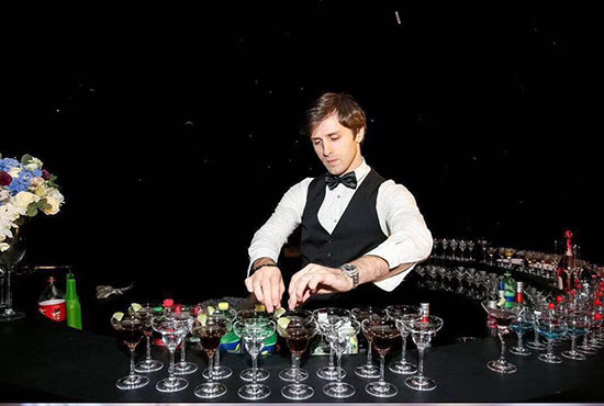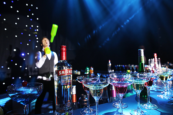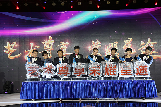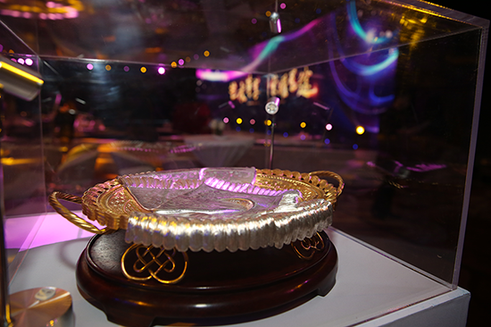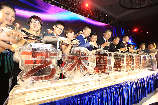 ▲ 为“艺术尊享 荣耀星途”主题冰雕注入红酒