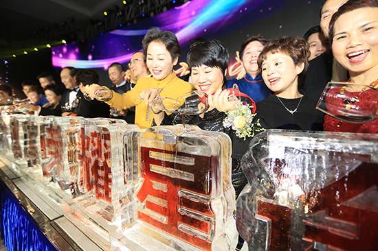 走过璀璨的星空大道,沿着悠扬的琴声步入会场,一场动感炫目的灯光秀,拉开了酒会序幕。新时代健康产业集团总经理黄永刚首先上台致辞。他对各位尊贵嘉宾的到来表示热烈欢迎,对大家的变化感到欣喜。他感谢大家为公司做出的贡献,希望大家承担起责任,在继承中创新,不断提升自己的领导力,积极应对各种变化,齐心协力创造更美好的新时代。借此机会,他与公司领导班子成员向全场嘉宾祝酒,一起将红酒注入象征光明、璀璨、吉祥与美好的主题冰雕中,并许下了对各位嘉宾的美好祝愿。