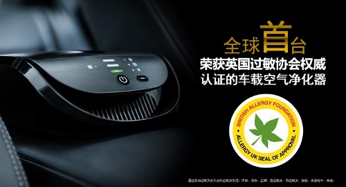 有效减少或滤除过敏原,是全球首台荣获英国过敏协会权威认证的车载空气净化器