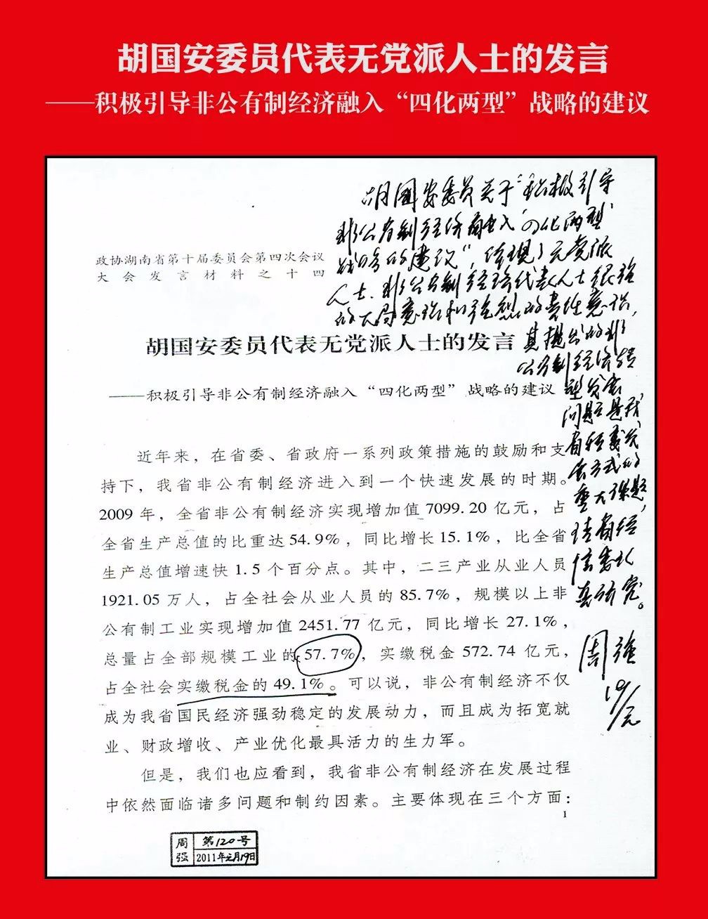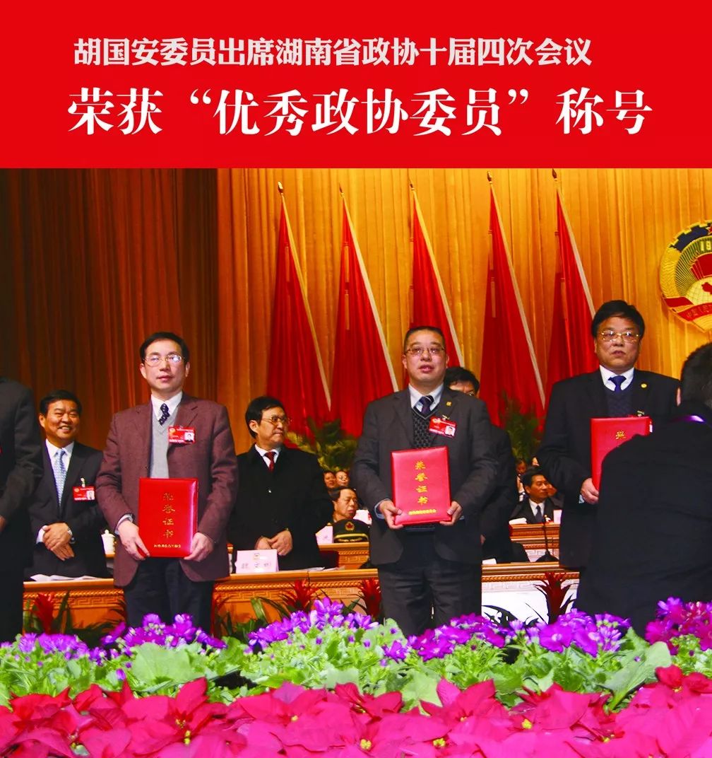 对于再次当选湖南省政协委员,胡国安表示:政协委员是一种使命,更是一种责任,肩负着社会各界的信任与期望。在今后的工作中,将紧贴国家发展脉搏,虚心向其他委员学习经验,不断提高参政议政水平和质量;继续充分发挥人民政协协调关系、汇聚力量,建言献策、参政议政、服务大局的重要作用,切实履行好政协委员的神圣职责,努力为湖湘非公经济发展创造更大的价值,谱写更加辉煌的时代篇章!