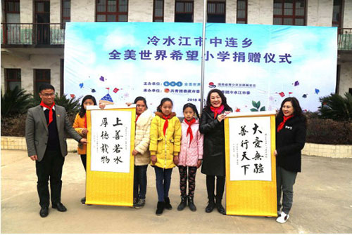 1月15日,全美世界希望小学捐赠仪式在冷水江市中连乡杨家学校顺利举行,团省委副书记仇怡出席仪式并讲话。