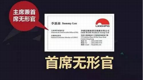 李惠森的新名片上的职务为“主席兼首席无形官”