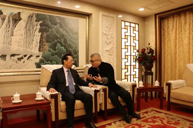 中脉公益基金会主席、江苏省慈善总会副会长周希俭与全国人大常委会副委员长、民建中央原主席、中华思源工程扶贫基金会理事长陈昌智会谈