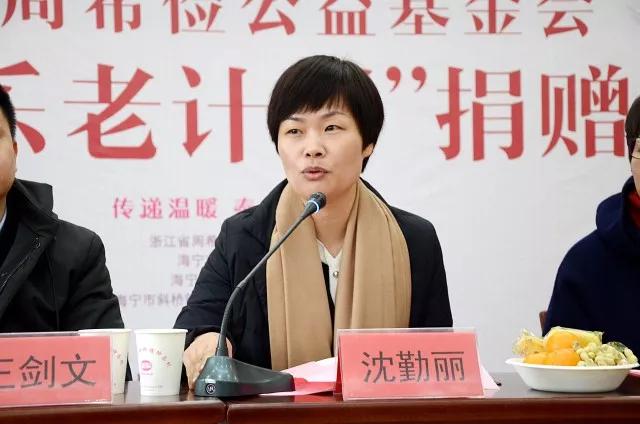 捐赠仪式上,周俐理事长发表了讲话。她说,周希俭主席和我生于海宁长于海宁,对这里我有着难以割舍的故乡亲情。从小,在父母的言传身教中,我就明白了“孝乃德之本”的道理,并将其视为终生奉行的道德准则。