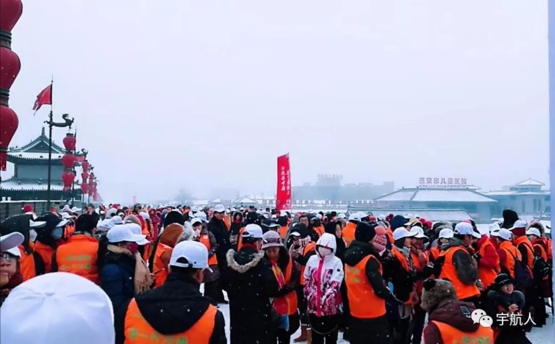 27日,西安街头飘起雪花,天气格外寒冷,而有这么一群人不畏严寒,在雪天奔跑在城市街巷,用奔跑的力量绘制一次公益行动。他们就是宇航人,浩浩荡荡的穿梭在古城街头,给雪中的西安带来了独特风景。