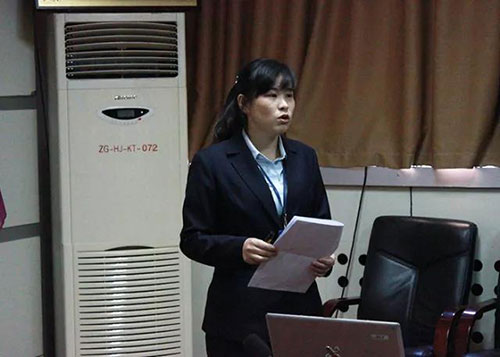 【威海紫光圣果科技办公室副主任刘美佳就威海紫光圣果科技发展进行汇报】
