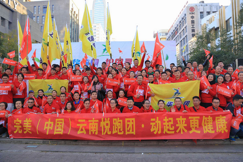 1月28日上午,由昆明市五华区全民健身指导协调委员会主办,五华区文体旅游局、护国街道办事处承办的2018“五华跑团 护国寻宝”活动,在昆明南屏街广场开启新年第一跑。完美云南分公司作为辖区优秀企业和支持单位参与其中,百名完美伙伴组成完美悦跑团热力开跑,千份完美产品作为活动纪念走进千家万户,完美风采深入人心。
