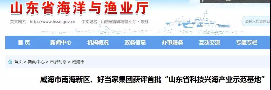 好当家集团获评首批“山东省科技兴海产业示范基地”
