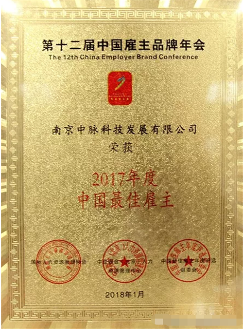 中脉荣膺“2017年度中国最佳雇主”荣誉称号