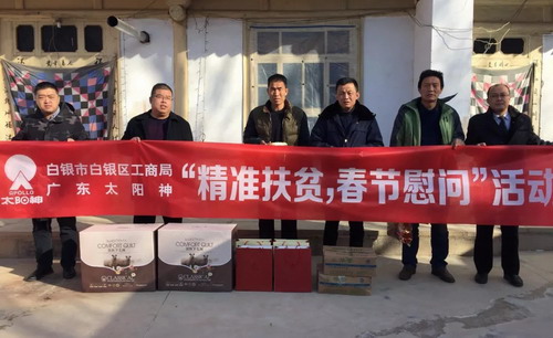 1月31日,岁末年初,太阳神甘肃分公司积极参与白银市白银区工商局举办的“精准扶贫,春节慰问”爱心公益活动。