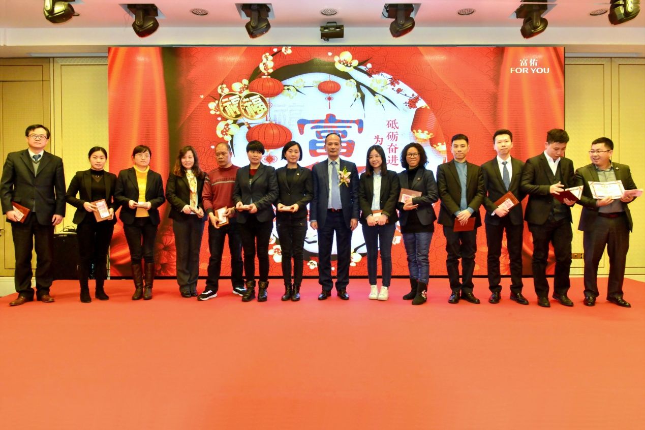 本次年会为年度优秀员工、五年忠诚员工、优秀管理员、十年忠诚员工分别颁发奖金和荣誉证书。他们是2017年一批优秀上进、出类拔萃的员工,他们认真负责,岗位至上,没有理由和怨言,只有尽职与尽责。用行动诠释着一切,用担当感动着他人;他们忠诚尽力,坚守着岗位,追求着上进,抒写着岗位日常、定格着精彩瞬间,助力着丰功伟绩,谱写了无数畅快淋漓的富佑之歌;他们在市场一线,伺机应变,临危不惧,冲锋陷阵,势如破竹。他们决策事务,高瞻远瞩,精准应对,当机立断,带出一支又一支训练有素的队伍;他们,是见证过富佑最开始模样的人,是一路支持陈董、胡董挺过风霜雨露的人,携手走过波澜壮阔的岁月,共同欢笑在硕果累累的收获季节。他们,荣誉无愧于富佑,更无愧于心;他们,是富佑集团的骄傲!