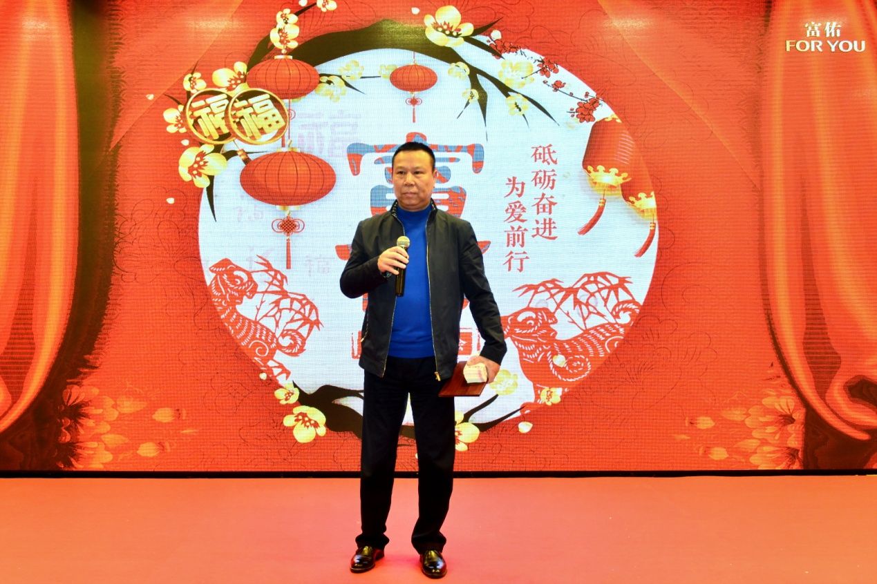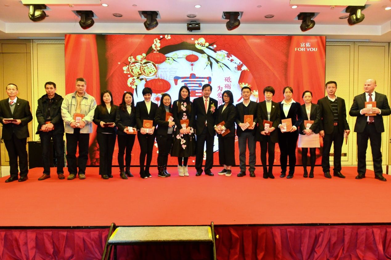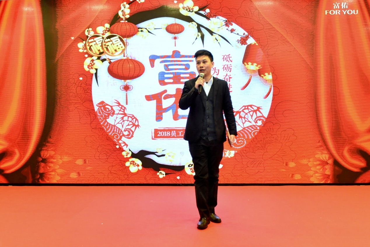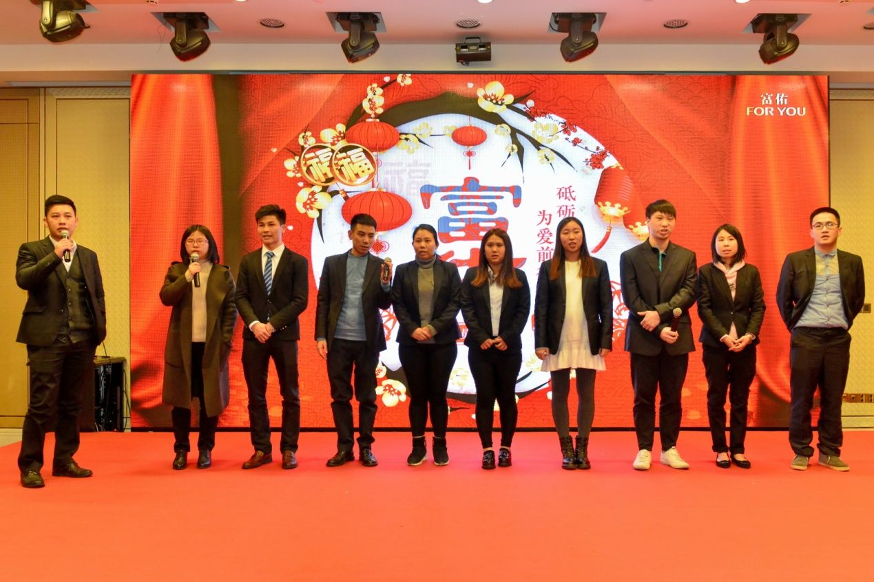 陈怀德先生致辞中有说不尽的感谢,他首先代表富佑集团董事局向全体员工的辛勤付出表示衷心的感谢。他说道:为富佑尽心竭力流出的每一滴汗水都将被铭记;其次,他感谢千里迢迢赶来参加员工年会的五大洲代表们,所有来自各个海外市场的区总们,为富佑构建了完整的区块链,让富佑了解全球各地的需求促进企业开拓更大的市场,并巩固了富佑在国际领域的地位;最后,他感谢陪伴富佑,跟随他走过五年、十年的伙伴们,二十年、三十年岁月的兄弟姐妹们 ,“你们是我事业前行中的凤毛麟角,因为你们的相随,让我不是孤军奋战”。