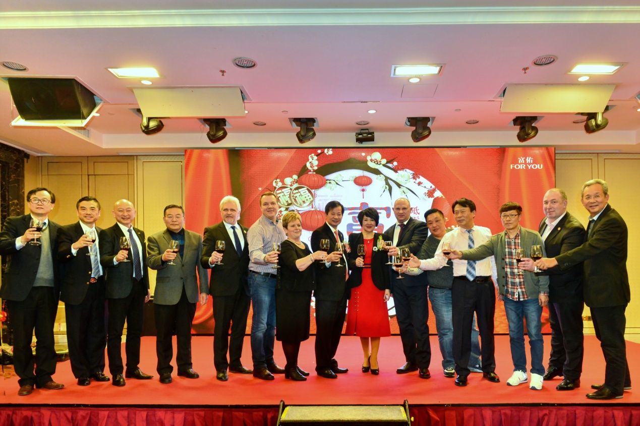 陈董带领海外分公司的高管为大家祝酒