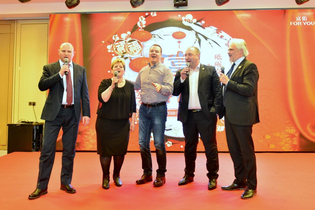 胡静女士致辞时隆重地介绍了每一位来自海外分公司的员工,并就2017的富佑集团、领导人员、产品小分子肽等在各个领域获得的荣誉悉数指出,过去一年赢得的掌声和奖项数不胜数,她将这份荣誉归功于全体员工们。报喜之余,她诚挚地希望在座的伙伴们能在2018继续砥砺奋进,为爱前行。富佑会把大爱无边的文化渗透到每一位员工身上,希望大家能将这份温暖恒久蕴存,无论走到哪里,不忘初心。
