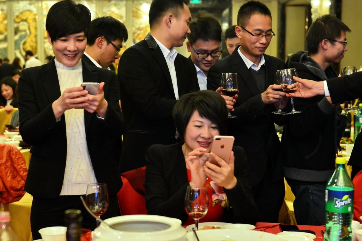 宴会的高潮,不外乎发放红包及抽奖环节,五万红包分为十次随机分发,穿插领导倾情发出,每次主持人高呼手机准备时,坐席上的人们蠢蠢欲动,目不转睛,稍怕慌神一秒,错过了红包。抽奖分为一、二、三等奖,过程中,是屏息以待,唏嘘长叹、欢呼喜悦的不同声音错乱交杂。