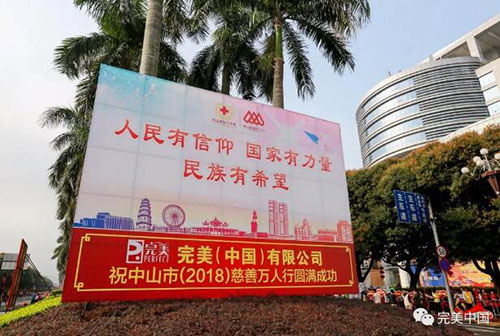 中山市慈善万人行活动旨在传承博爱人道精神,动员和凝聚人道力量,为困难群体提供人道援助,营造互帮互助互爱的良好社会氛围,该活动也为海内外中山乡亲提供了关心家乡建设的窗口。完美公司董事局领导不仅坚持连年参与慈善万人行,还鼓励、带动完美员工投身这项慈善盛事,让员工们一同参与城市的建设与发展,深切感受孙中山精神的伟大。
