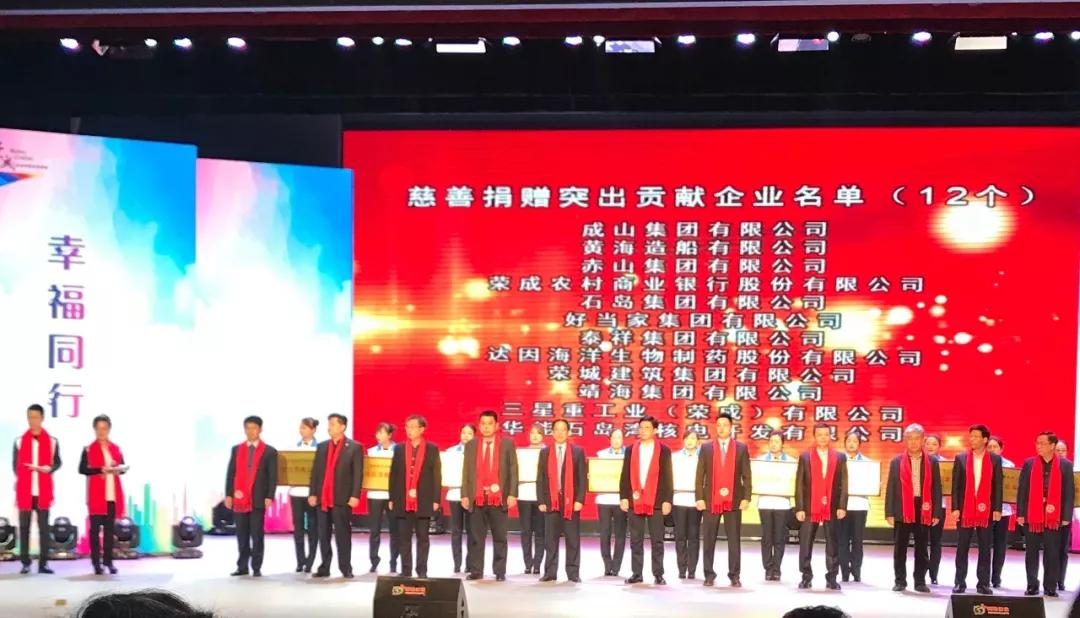 3月2日,在第55个学雷锋日来临之际,2018“志愿荣成”慈善公益典礼隆重举行,好当家被授予2017年度慈善捐赠活动“突出贡献企业”称号。
